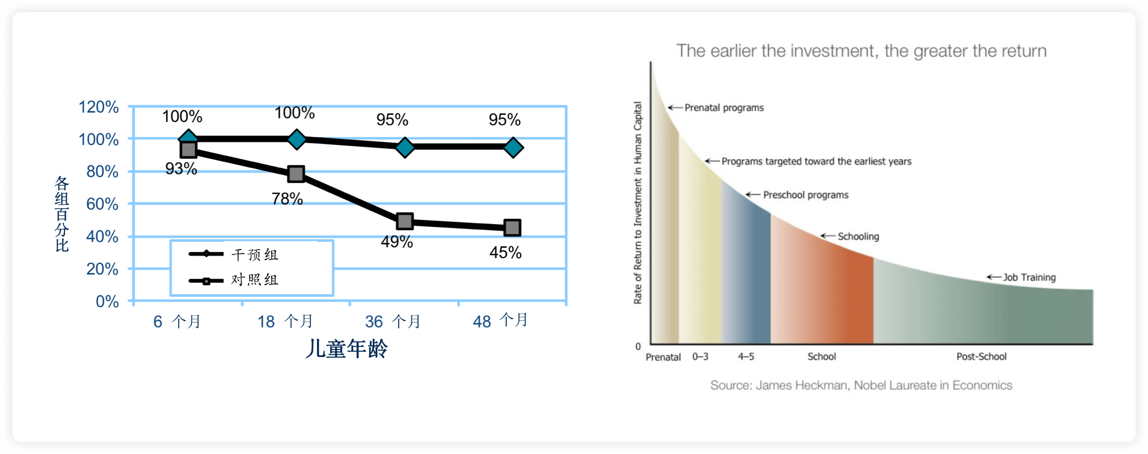 ABCD快乐育儿法起始于美国开展的一项具有里程碑意义的纵向育儿研究,该研究历时40余年,研究内容包括从婴儿期到学龄前,对儿童及其家庭开展有关学习、认知、社会性和情绪发育的支持项目,并对该支持项目的近期和远期效果进行评估。历时数十年的研究和不断完善,形成了一套ABCD快乐育儿法,以及对该育儿法效果评估的大量数据。这些数据显示ABCD快乐育儿法为儿童的综合发展带来了积极的和长期的效益。在早期参与过ABCD快乐育儿法项目的家庭成员中大学毕业的比例以及成人时期的社会能力和健康状况均有显著提高。